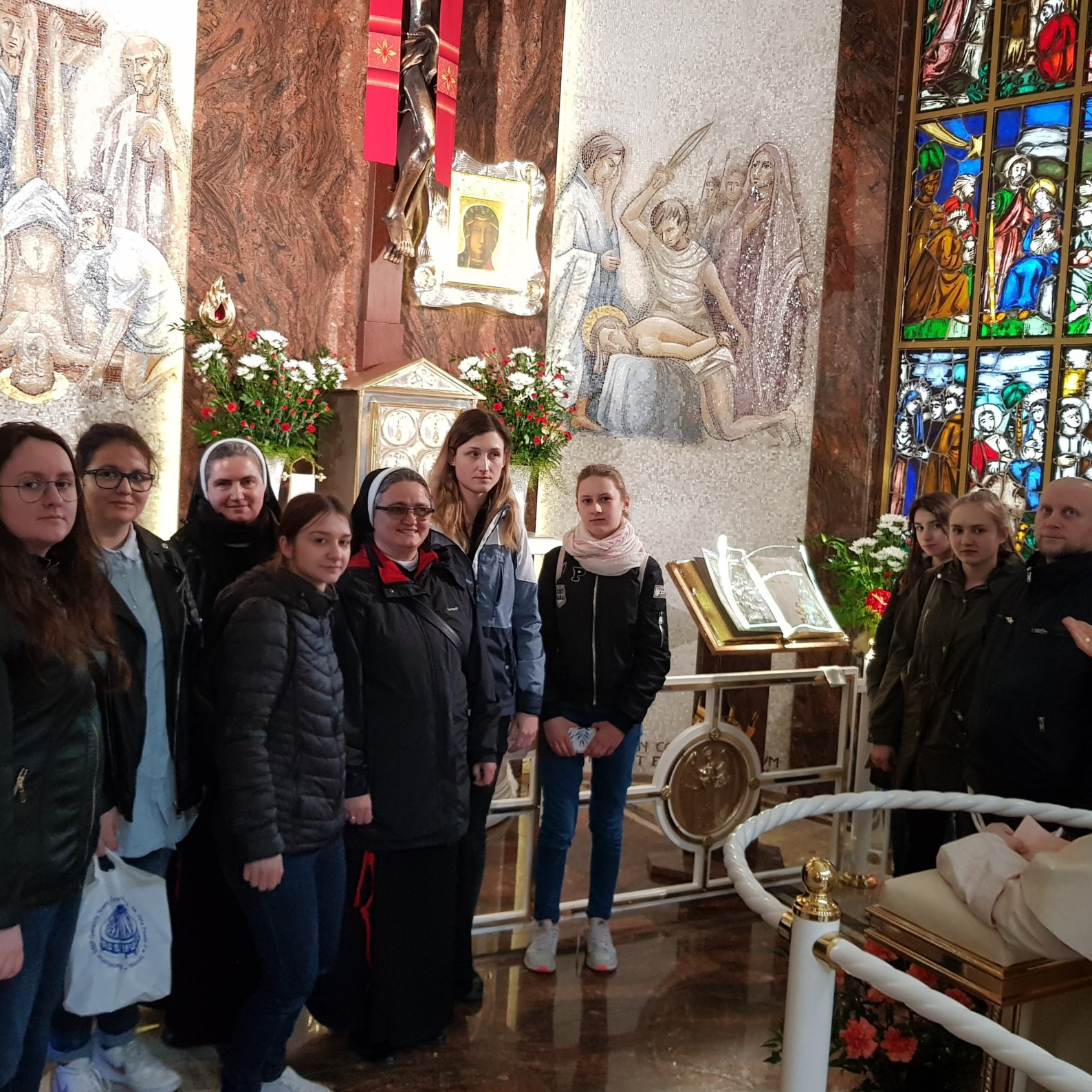 W czasie wolnych majowych dni (2-4 maja) w naszym klasztorze w Ciechocinku w ramach Pasyjnych Dni Młodych odbyły się rekolekcje dla dziewcząt „Kobiety Boga z pasją”. W drodze na rekolekcje, nawiedziliśmy Sanktuarium Bożego Miłosierdzia w Płocku – miejsce objawień Pana Jezusa św. siostrze Faustynie Kowalskiej, a o godz. 15:00 prowadziliśmy Koronkę do Bożego Miłosierdzia ze studia Radia Maryja w Toruniu. Zostaliśmy tam bardzo serdecznie przyjęci i hojnie obdarowani literaturą duchową. Następnie nawiedziliśmy Sanktuarium NMP Gwiazdy Nowej Ewangelizacji i św. Jana Pawła II. Oddaliśmy tam hołd Polakom, którzy poświęcili swoje życie ratując Żydów w czasie II wojny światowej.