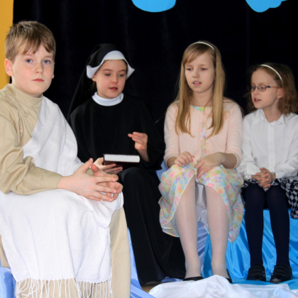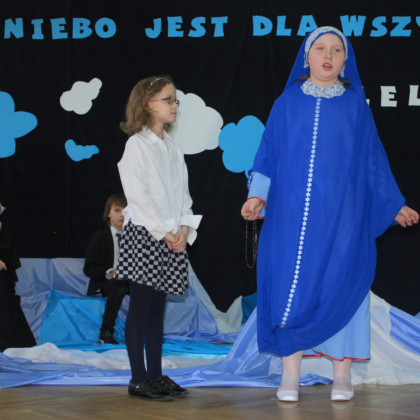 „Niebo jest dla wszystkich” to tytuł przedstawienia z okazji Świąt Wielkanocnych, które wystawili uczniowie klasy 3d w Szkole Podstawowej nr 2 w Łodzi. Do studia telewizyjnego zostali zaproszeni goście: Dobry Łotr, Matka Boża, św. Stanisław Biskup i Męczennik, św. Franciszek z Asyżu, św. Faustyna Kowalska, bł. Piotr Frasatti i św. Jan Paweł II. Uczniowie wcielający się w rolę Świętych, opowiedzieli o tym, jak należy żyć na ziemi, aby dostać się do nieba, które Zmartwychwstały Pan Jezus otworzył dla wszystkich ludzi. Przedstawienie, wraz z młodymi Aktorami przygotowała s. Rozalia Surmacz.