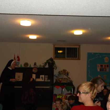 …Tak śpiewały dzieci w Szkole Polskiej św. Jana Pawła II rozpoczynając spotkanie opłatkowe 19 grudnia w salce u Sióstr Pasjonistek w Peterborough. S. Dolores serdecznie witając dzieci, młodzież, rodziców i przyjaciół podziękowała za przybycie w ten zimowy, grudniowy wieczór. W jednej ze współczesnych pastorałek dzieci śpiewały: “Skrzypi wóz, wielki mróz, wielki mróz na ziemi … hej kolęda, kolęda. ”Najmłodsza Julcia, która właśnie tego dnia skończyła 4 lata, z własnej inicjatywy, z radością dyrygowała scholką wykazując doskonałe wyczucie rytmu.