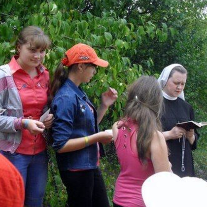 W dniach 3-8 lipca 2015r. w rodzinnej miejscowości s. Ludmiły, w Smotryczu na Ukrainie s. Ismena, s. Alberta i s. Ludmiła we współpracy z OO. Pasjonistami poprowadziły rekolekcje dla dziewcząt. Tematem rekolekcji było „Słowo Boże w moim życiu”. W rekolekcjach uczestniczyły 23 dziewczęta. Rekolektantki czytając Biblię wsłuchiwały się w to, co do nich chce powiedzieć Bóg. Każdego dnia uczestniczyły we Mszy świętej. W czasie rekolekcji nie brakowało chrześcijańskich tańców, odgrywanych przez dziewczęta scenek oraz akcentów patriotycznych. Korzystając z pięknej pogody, dziewczęta wraz ze swymi opiekunkami modliły się w plenerze modlitwą różańcową oraz rozważały Mękę Pańską. W swych modlitwach szczególnie prosiły Boga o łaskę deszczu, ponieważ w tej części Ukrainy, gdzie odbywały się rekolekcje od maja nie było opadów i panuje ogromna susza. Uczestniczki rekolekcji wraz z OO. Pasjonistami odwiedziły osoby starsze przebywające w domu opieki. Uczestniczyły tam we Mszy świętej, po której O. Proboszcz udzielił sakramentu namaszczenia chorych. Dziewczęta zaśpiewały narodowe pieśni ukraińskie oraz wręczyły