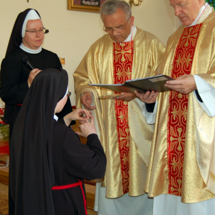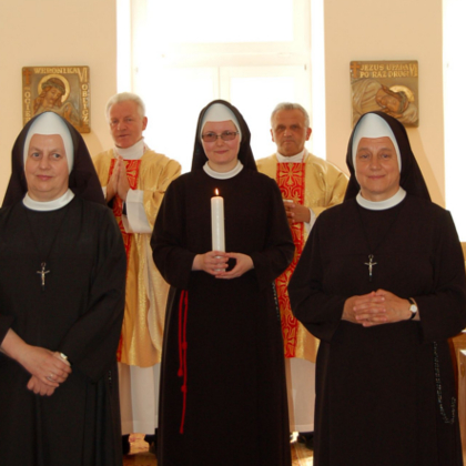 W Roku Życia Konsekrowanego swoją profesję wieczystą w płockiej kaplicy Sióstr Pasjonistek złożyła s. Julianna Monika Balska. Wyjątkowe wydarzenie miało miejsce 8 sierpnia br. w czasie Mszy świętej sprawowanej o godz. 16.30. Ofiarę Eucharystyczną koncelebrowali: wujek s. Julianny – ks. prałat Eugeniusz Graczyk, proboszcz par. św. Piotra Apostoła w Ciechanowie i ks. kanonik Kazimierz Kowalski, proboszcz rodzinnej parafii s. Julianny pw. św. Antoniego w Żurominie. Podczas uroczystości zakonnej s. Juliannie towarzyszyła rodzina, nasze siostry na czele z Matką Generalną i Siostrami Radnymi. Promienna i radosna s. Julianna złożyła wyrazy wdzięczności za dar powołania pasyjnego i Mękę Zbawicielowi. Podziękowała również zebranym kapłanom, Matce Generalnej, Zarządowi Zgromadzenia, siostrom, rodzinie, zmarłym bliskim jej sercu oraz Wspólnocie Posłanie. Następnego dnia odbyła się Msza św. dziękczynna w intencji s. Julianny w parafii św. Antoniego w Żurominie. To właśnie tutaj, przed kilku laty s. Julianna rozeznała powołanie i za natchnieniem Ducha Świętego wyraziła wolę pójścia w sposób doskonalszy za Chrystusem i poświęcenia się Umiłowanemu nade wszystko Bogu przez służbę bliźnim w Zgromadzeniu Sióstr Pasjonistek. Mszę św. w intencji s. Julianny sprawował ks. kanonik Kazimierz Kowalski, proboszcz parafii, prosząc o Boże błogosławieństwo i wierność złożonej profesji oraz nowe powołania zakonne. Wraz z wiernymi w tej intencji modliły się współsiostry, które przybyły z Płocka i Warszawy.