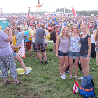 Angelika, najmłodsza uczestniczka, jest uczennicą 12 klasy liceum. Pojechała z grupą zorganizowaną, natomiast Monika, Shantel i Kasia (studentki uniwersytetu) pojechały prywatnie. Razem z rodziną uczestniczyły w ŚDM. Dziewczęta są wychowankami Szkoły Polskiej św. Jana Pawła II w Peterborough. Aktywnie uczestniczą w życiu szkoły i parafii (są lektorami, śpiewają w chórze, grają na polskich Mszach św.). 27 b.m. spotkałam się z nimi u nas w salce szkolnej przy kawie i ciastkach. Dziewczęta z ogromnym entuzjazmem dzieliły się wrażeniami, których doświadczyły podczas tych niezapomnianych dni. Wszystkie są urzeczone gościnnością Polaków, wspaniałą organizacją ze strony rządu polskiego i polskich parafii oraz radością uczestników ŚDM. Wymieniły się pamiątkami i adresami ze swoimi rówieśnikami z różnych stron świata. Angelika miała najwięcej materiałów, ponieważ była z pielgrzymką. Wspaniałe są te pamiątki, szczególnie przewodnik historii Polski w wersji angielskiej, bardzo skrócony co prawda, ale pięknie wydany. Zamieszczone jest na wstępie słowo Prezydenta RP A. Dudy oraz słowo Kardynała S. Dziwisza. Angelika, Monika, Shantel i Kasia zafascynowane są Polską i zamierzają jechać tam na studia. Kasia już w październiku rozpocznie realizować swoje marzenia na studiach we Wrocławiu (Akademia Medyczna).