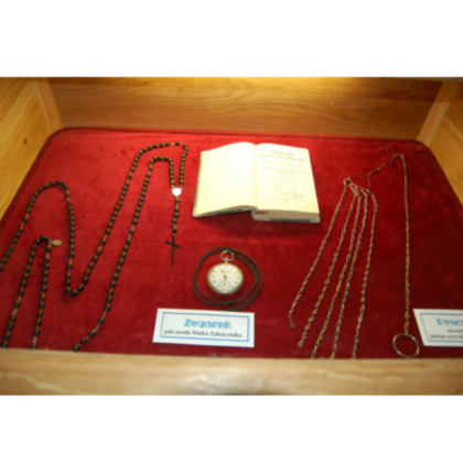 Gabloty pokazują nam również rzeczy, które były razem z Matką Założycielką w grobie przez 60.lat Jej tam spoczynku: są to krzyżyki, medaliki, obrączka z 1900 roku, konstytucje a w nich obrazki Chrystusa cierniem ukoronowanego i Św. Teresy z Avilla. Znajduje się też kilka zdjęć Matki Założycielki samej i z Siostrami, zegarek oraz dyscyplina- narzędzie pokutne, jakiego używała.